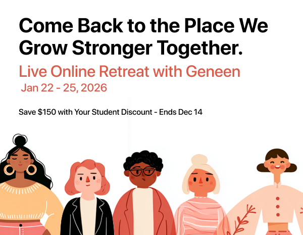 If you've been longing to join us once again on Geneen's LIVE online retreat, to be with other women who love what you love, who want what you want, reserve your seat today and SAVE $150. Don't wait! Your special Retreat Student Discount ends 12.14.2025.